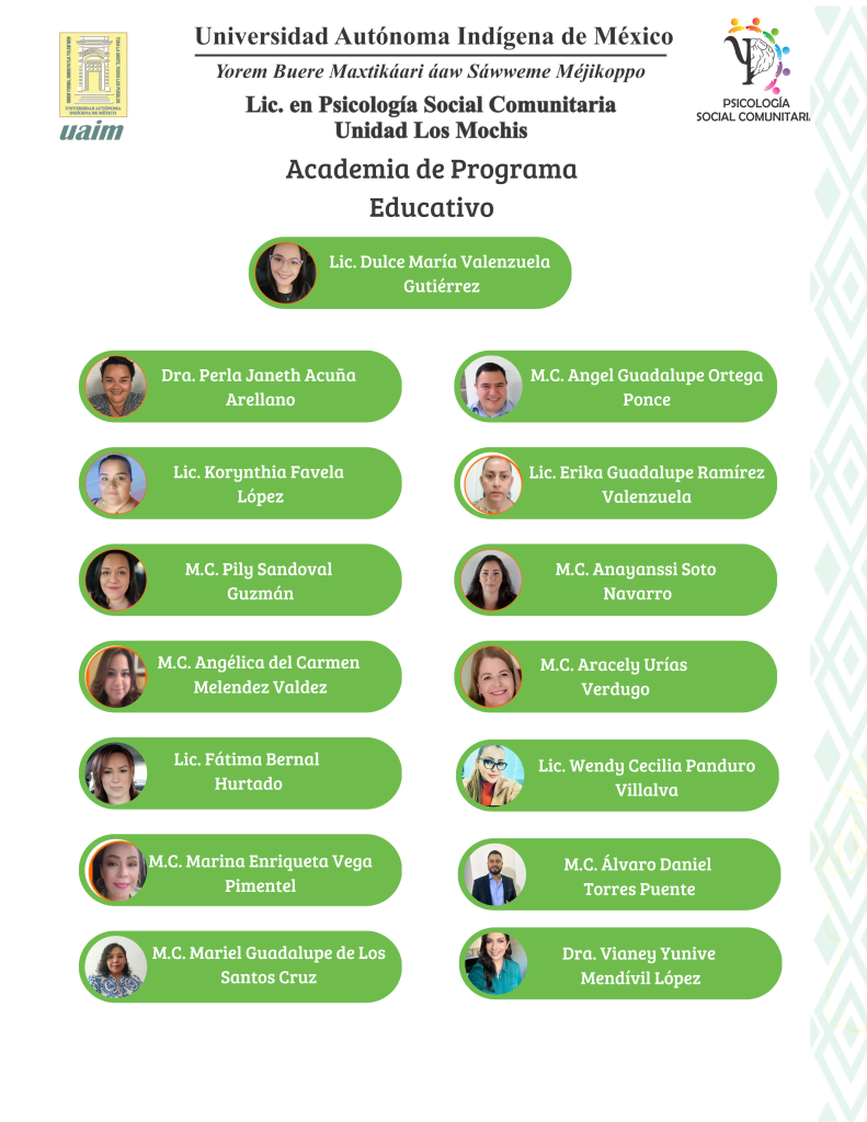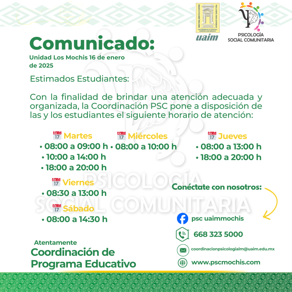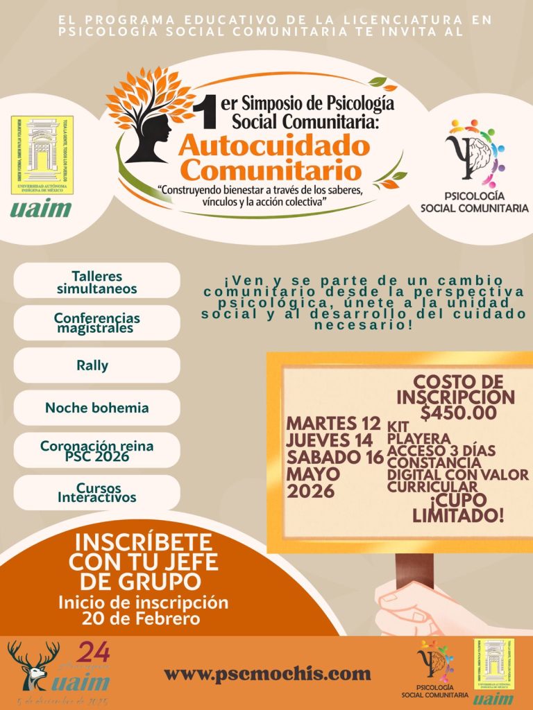 La Licenciatura en Psicología Social Comunitaria de la Unidad Los Mochis te da la más cordial bienvenida a este espacio digital, diseñado para informar, vincular y fortalecer el sentido de comunidad entre estudiantes, docentes, egresados y sociedad.